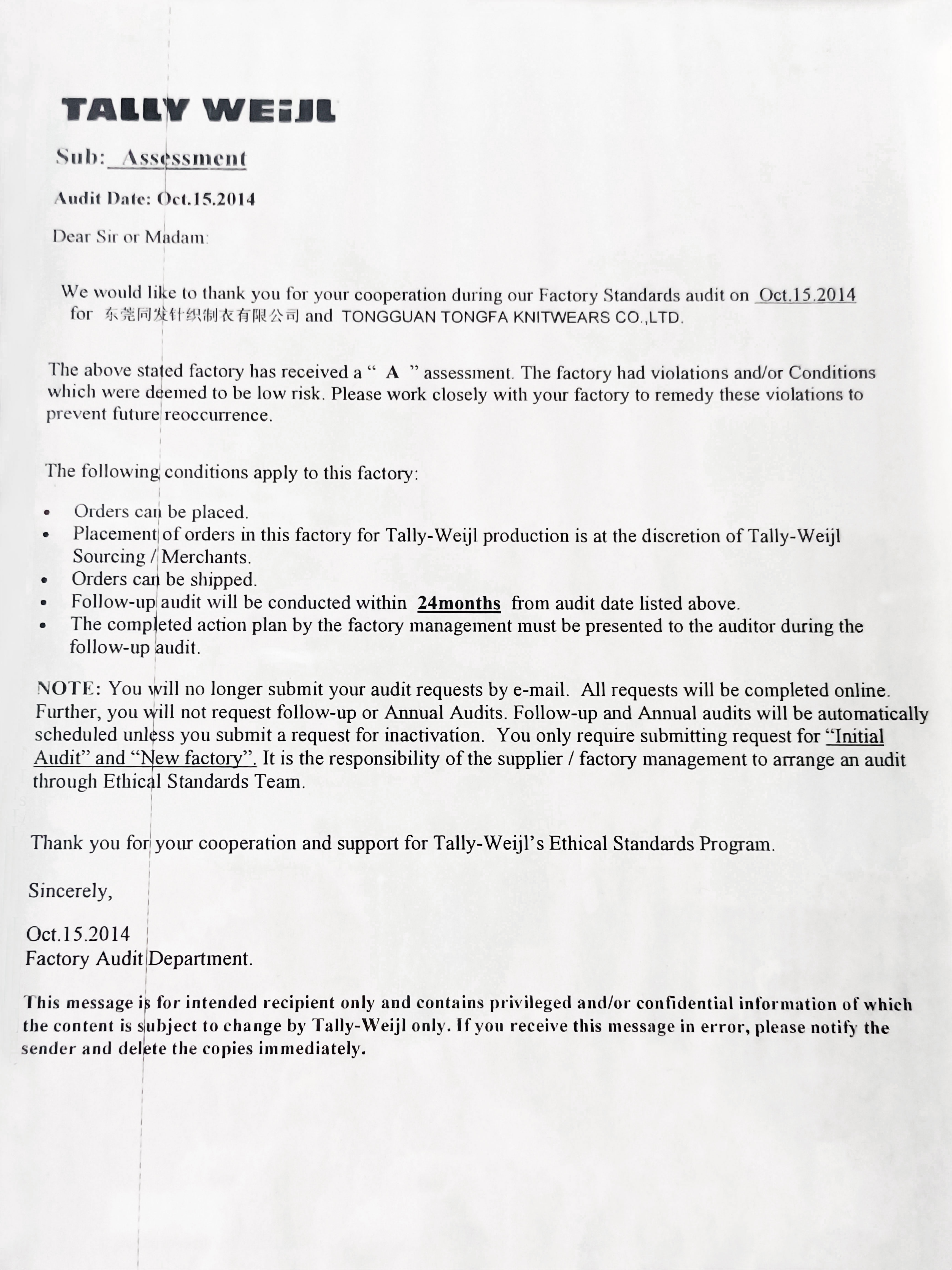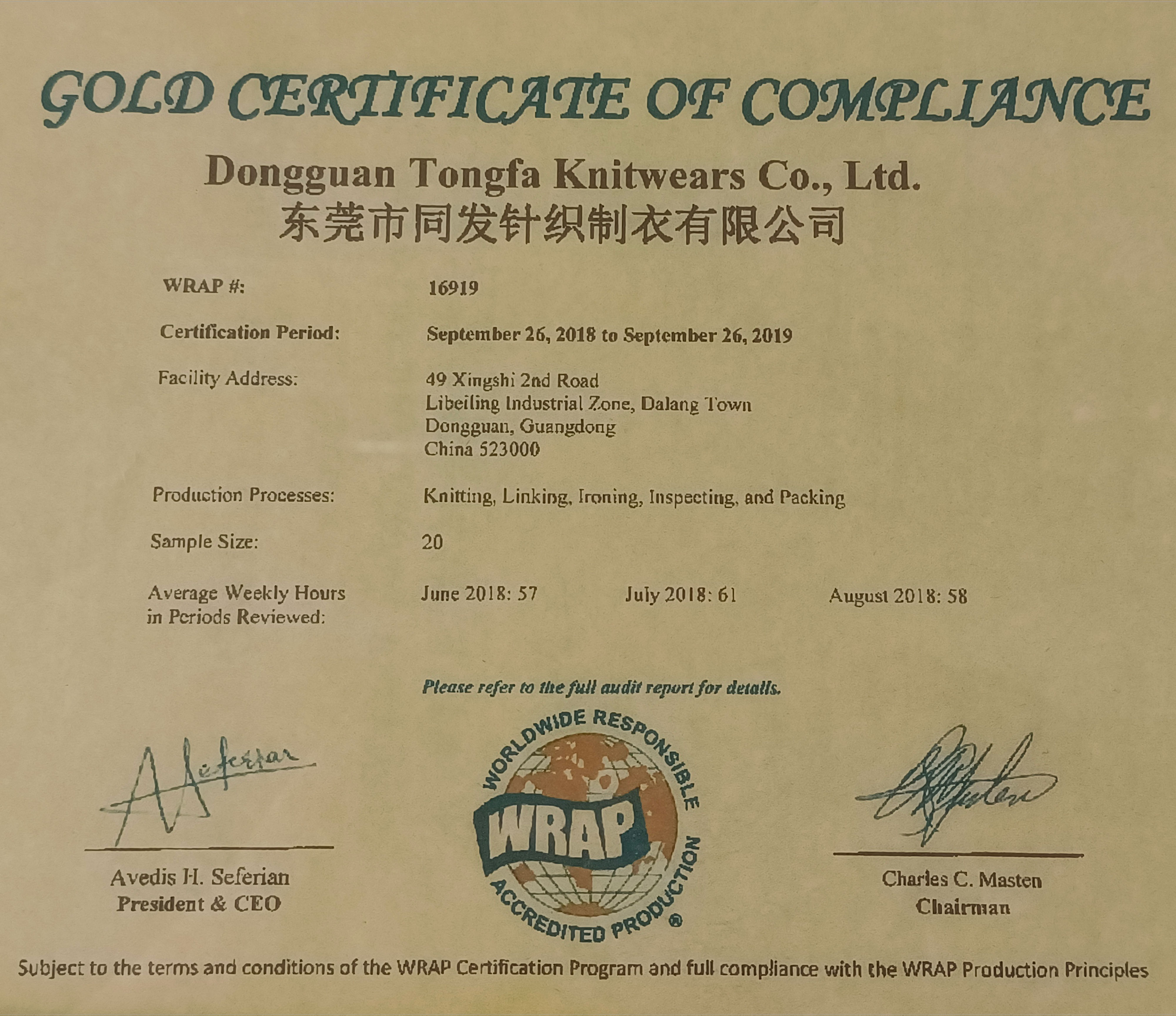 Dongguan Tongfa Knitwear Co., Ltd is a modern fashion knitwear manufacturer integrating design and trading. The company has its own factory, professional design team and foreign trading department, produces and sells all kinds of sweater with superior quality. Our products have passed the SGS test and obtained BSCI and WRAP certificates. We have advanced SHIMA-SEIKI and STOLL auto knitting machine, and we capable to do 3 guage to 16 guage. With fine quality and excellent services, we have clients around the world. Our target is to establish long-term partnership with fashion brand, help them achieve more profits and sales. Welcome to order and discuss cooperation with us!